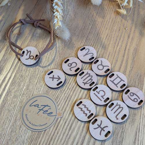 Bracelet en bois gravé du signe du zodiaque, une création artisanale pleine de sens et d’énergie. Un bijou unique, inspiré par les astres et la nature.
